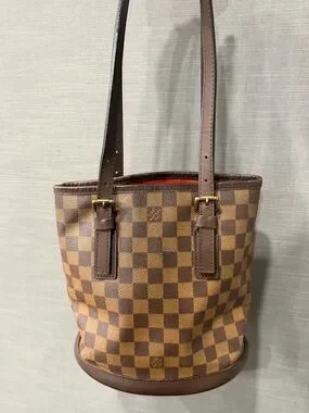 LOUIS VUITTON Marais Shoulder Bag Damier Ebene Leather Brown
