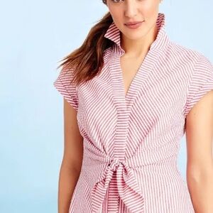 Vineyard Vines NWT Tie Front Seersucker Shirt Dress in Malibu Pank size 2