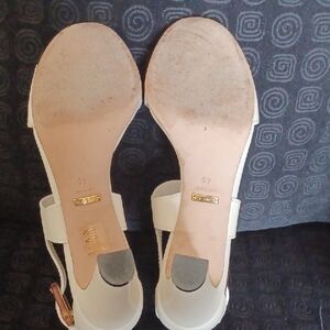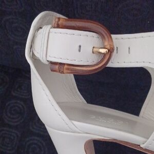 Gucci Cream Block Heel Sandals with Ankle Buckle
