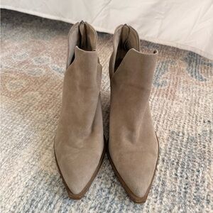 Vince Camuto Taupe Suede Pointed V-Cut Ankle Booties