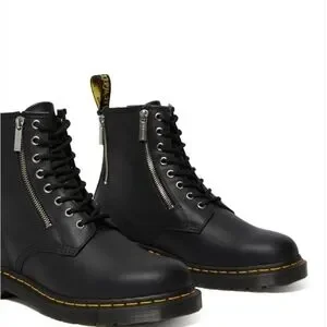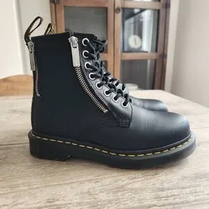 Dr. Martens, 1460, Nappa leather, black combat boots, zip front, lace up, Moto boots, US Women’s 5, US Men’s 4, Dr. Martens Zip, unisex boots, leather footwearGrunge, edgy, minimalist, street style, utility, biker, goth, punk, industrial, casual, platform-look, classic docs, minimalist