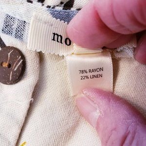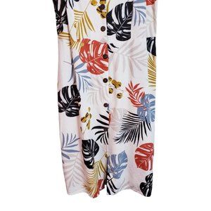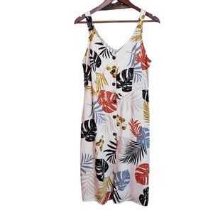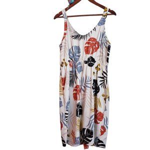 Monteau Linen Blend Palm Pattern Sundress Large Natural Beige Multicolor Dress