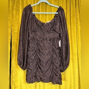 The kind of easy and flattering dress you'll be reaching for all season long.Meet the Chrisley Mini Dress by ASTR, an elegant black piece perfect for any dinner party this spring. With long sleeves and a textured polyester and elastane blend, this 32 1/2" dress showcases a sweetheart neckline with a semi-sheer corset bodice and ruched mini skirt. The concealed zip and hook and eye closures ensure a seamless fit.