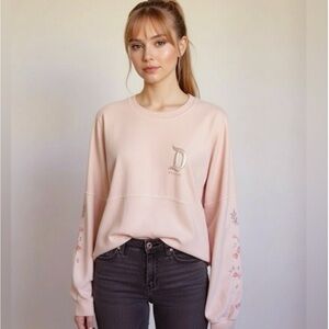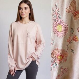 Disney Parks Peach Floral Sleeve Velour Embroidered Disneyland Spirit Jersey XS