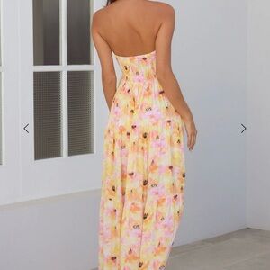 Hello Molly Yellow & Pink Floral Strapless Tie-Front Maxi Dress