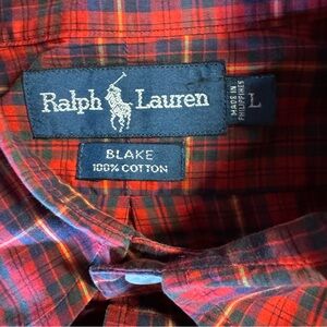 Ralph Lauren Blake men’s long sleeve button down plaid shirt size large. 100% cotton