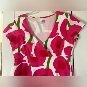Boden Vibrant Carnation Pink/Kelly Green Cotton dress, 10, MSRP $119