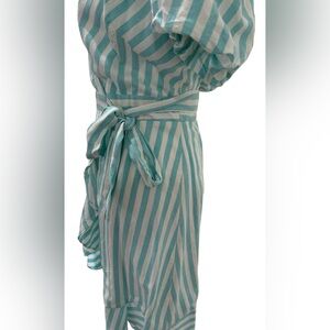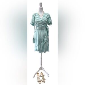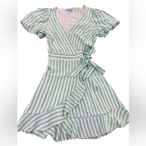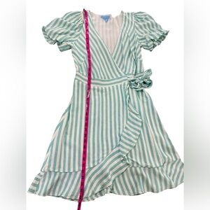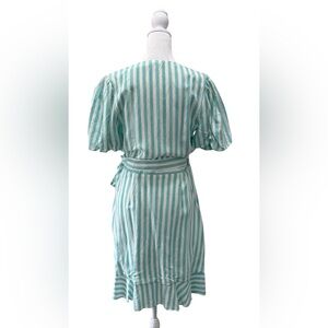 Draper James Puff Sleeve Wrap Dress in turquoise/white stripes size small