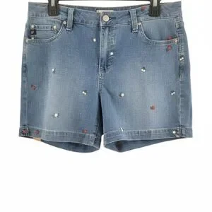 Seven7 Blue Jean Shorts with Floral Embroidery