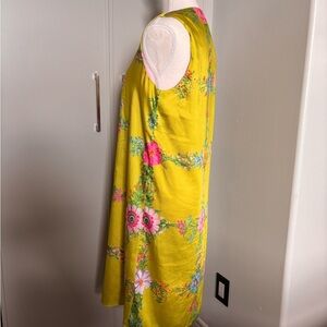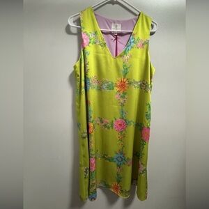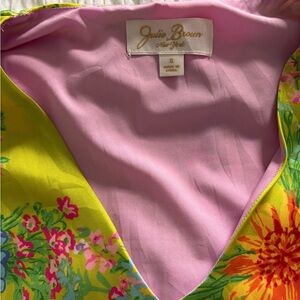 Step into style with this stunning green sundress by Julie Brown, designed with a sleeveless cut and a chic V-neckline. The dress features a delightful floral pattern with pink accents, making it perfect for a wedding guest or cocktail occasion. Its flowing midi length offers a sophisticated yet relaxed fit, ideal for resort wear. Worn once. In excellent condition.