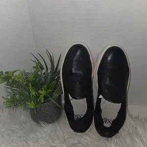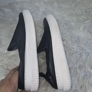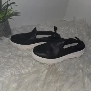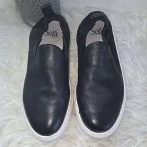 Sofft Somers II Black Slip-On Leather Flats with White Platform Sole. Size 8
