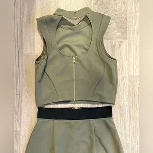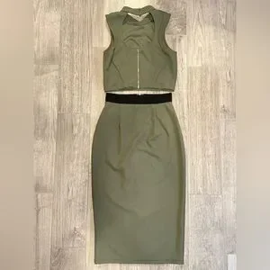Stylish olive green skirt set perfect for any occasion. Features a sleek design with a comfortable fit.