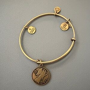 Alex and Ani expandable bangle with Virgo zodiac charm. Antique gold finish. Includes signature Alex and Ani branded charms. Lightweight and stackable. NO TRADE