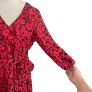 Jason Wu dress, floral cocktail dress, asymmetrical ruffle dress, old money fashion, women’s size 8 dress, Jason Wu red black floral, luxury designer dress, wedding guest dress, upscale party dress, evening event dress.