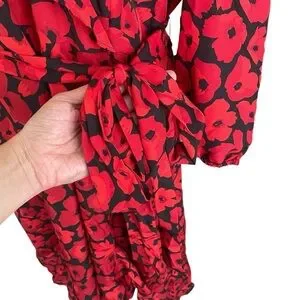 Jason Wu Floral Asymmetrical Ruffle Old Money Cocktail Red Black Dress Women 8