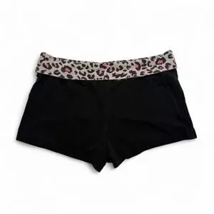 Fold over Y2K low rise Micro shorts black cotton pink cheetah print design women’s size Meidum (not Victoria’s Secret)