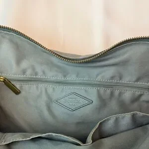 Fossil Fiona Blue Leather Shoulder Tote with Brown Handles