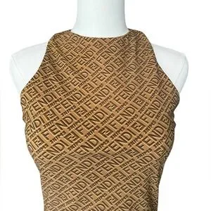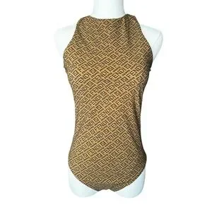 Fendi x SKIMS High Neck Logo Bodysuit in California Tan & Brown Size: Large