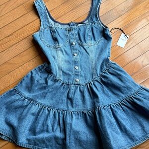 Forever 21 Denim Mini Dress Button Front Tiered NWT Size [M] Y2K