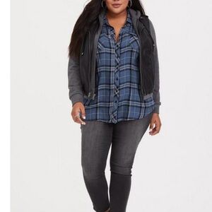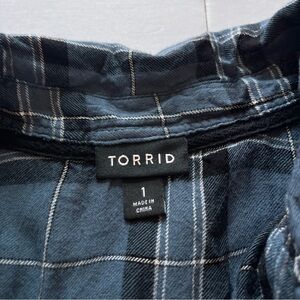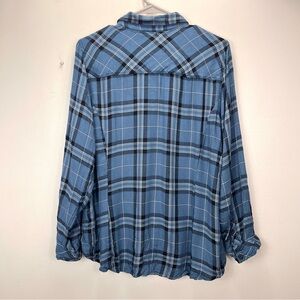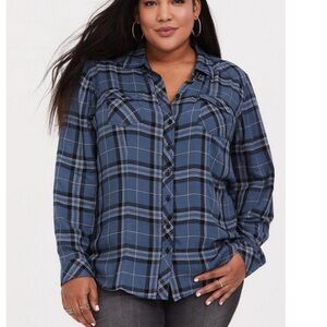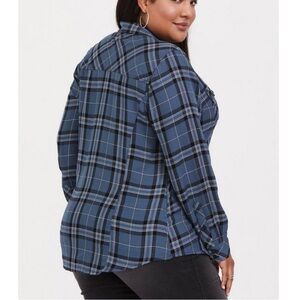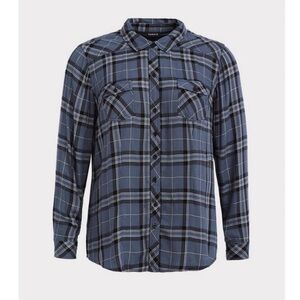 Torrid Blue Plaid Challis Button Down Long Sleeve Twill Camp Shirt Size 1X
