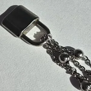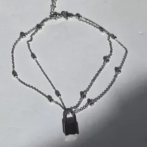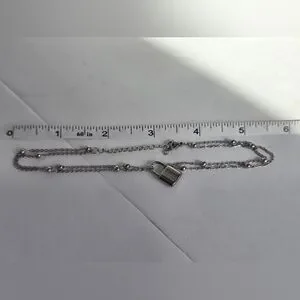 Sterling silver double chain anklet connected with a lock / padlock style charm