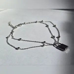 Elegant double-layer anklet in silver with a polished padlock pendant. The layered chains feature small bead accents for a modern, feminine look. Perfect for everyday wear and effortless styling in silver.