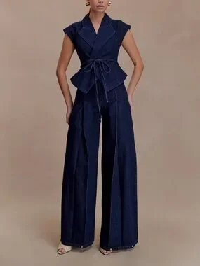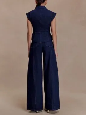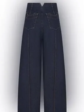 High-rise denim jeans with a tailored wide-leg silhouette. Panel detailing down the front of each leg. Polished indigo color for a versatile look. These have a flattering high-waisted fit and a premium feel.