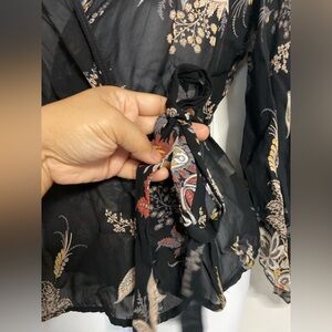T35- Black Semi-Sheer Floral-Paisley KIMONO Wrap Top