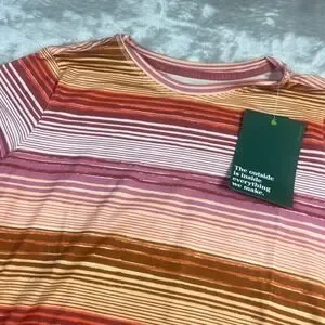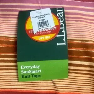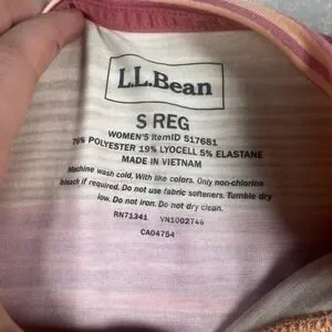 L.L.Bean, SunSmart, UPF 50, striped tee, activewear, moisture wicking, hiking top, outdoor apparel, summer shirt, knit top, pink orange, sun protection, lyocell blend, casual, athletic