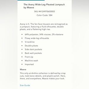Anthropologie The Avery Wide-Leg Pleated Jumpsuit by Maeve NWT