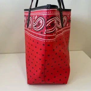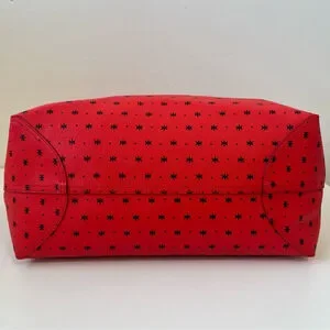 Designed for everyday functionality, the spacious interior offers ample room for essentials, while the slender shoulder straps provide comfortable wear. The vibrant red color and graphic detailing make it a standout accessory for both casual and statement looks.