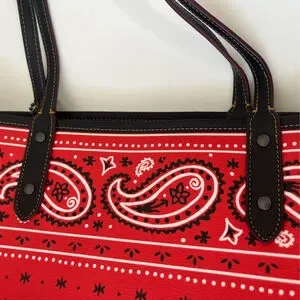 A playful take on a classic silhouette, this tote from Coach features a bold bandana print paired with the iconic Mickey Mouse motif. Crafted with smooth leather trim and detailed stitching, it blends signature Coach craftsmanship with a fun, nostalgic design.