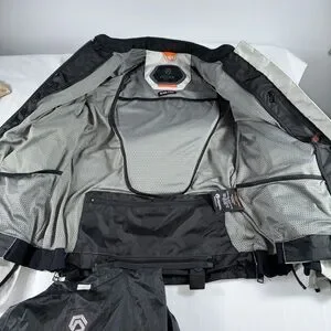 The Reax Women's Motorcycle Jacket in size Large designed is a stylish and protective garment designed for racing and track riding. Made from mesh material, the jacket features a zipper closure, removable lining, and protective armor on the shoulders and elbows. CE Level 2 armor”