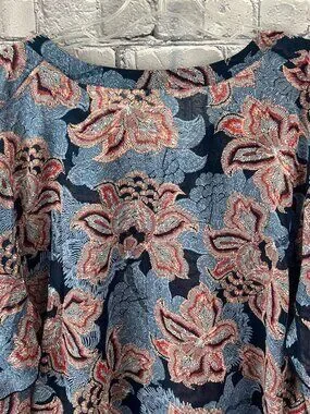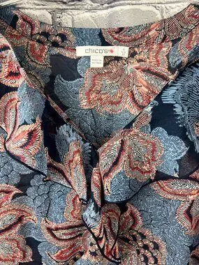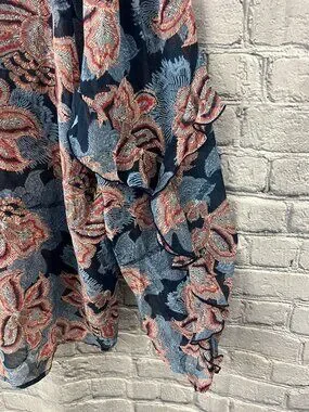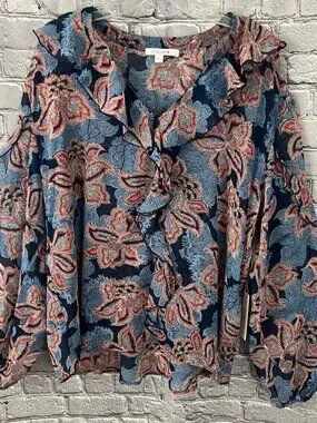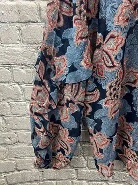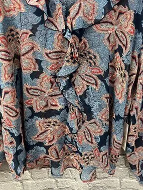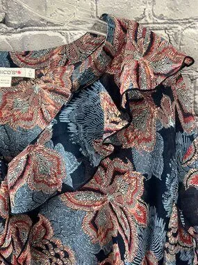 Chico’s NWT Size 4 US 20 Blue Floral Ruffle Front Blouse Long Sleeve Boho Top