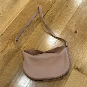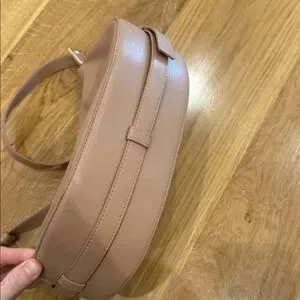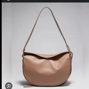 Soft curved silhouette with smooth leather finish. Adjustable shoulder strap for versatile wear. Subtle gold-tone hardware accents. Minimal embossed logo for understated style.