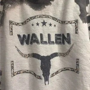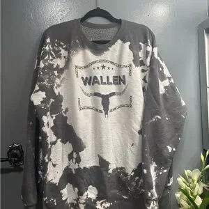 Bold black and white tie-dye crewneck. Central "WALLEN" logo with steer graphic. Soft knit for casual wear. Easy to style with denim or layered outfits.