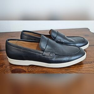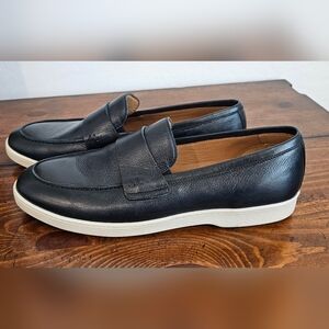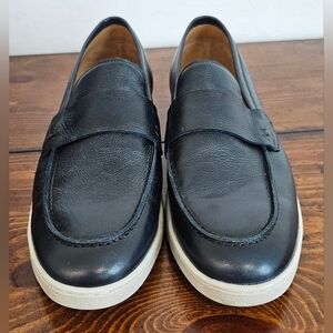 Classic navy blue leather slip-on loafers with a white cup sole for clean contrast. Smooth leather upper with a traditional penny strap delivers refined, easygoing style. Cushioned insole and flexible sole ensure comfortable all-day wear. Pairs well with smart-casual and weekend looks. Classy!