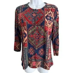 Lauren Jeans Co Ralph Lauren Top Women L Henley Aztec Southwest Boho Western