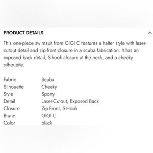 GIGI C Grace Surf Scuba Zip Black One Piece Swimsuit Surf Suit Medium NWT