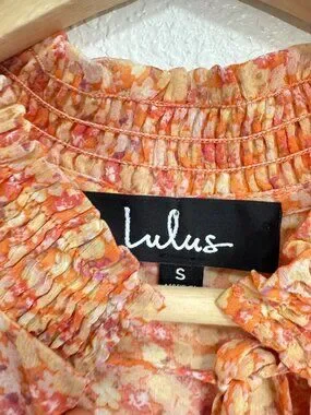 LULUS Lovely Thoughts Peach Floral Print Ruffled Long Sleeve Bodysuit Small