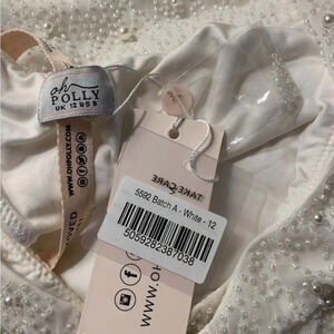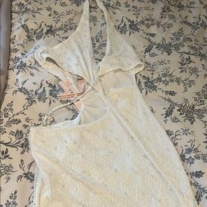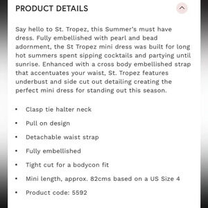Cute mini with plunge neckline. Decorative cutouts at waist. Fully embellished with a bodycon fit. Perfect for a bachelorette party.