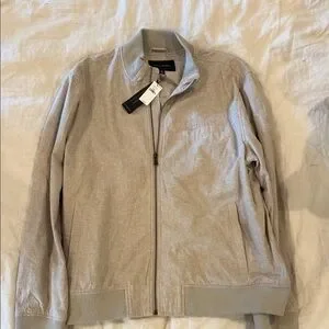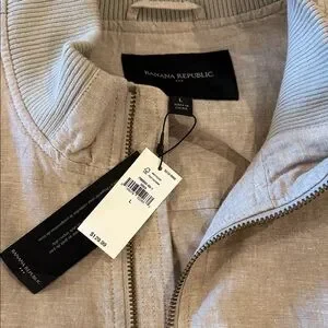 Banana Republic Men's Light Taupe Zip-Up Bomber Jacket Linen Large