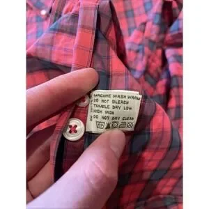 Orvis Men's Surfwashed Button Up Shirt Red Plaid 100% Cotton Size Large