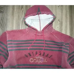 90s Vintage Union Bay Sweatshirt Size XL Maroon Stripe Hoodie Grunge Y2K Logo