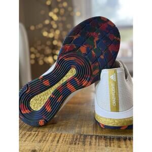 The adidas Crazyflight Team Volleyball Women's Size 8.5 M Sneaker Athletic Shoe GY92 is a stylish and functional athletic shoe designed specifically for volleyball players. Featuring a lace-up closure, flat heel, and rubber outsole, these sneakers offer comfort and support during intense games. The white color with gold accents and mesh upper material give them a sleek and sporty look, perfect for active women looking to elevate their performance on the court. With a focus on adidas Boost Technology, these shoes provide the necessary support and cushioning for high-intensity movements in volleyball.