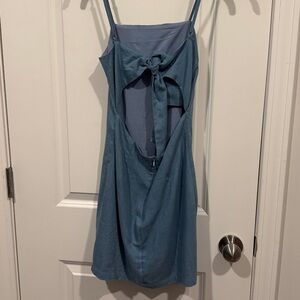 Lulus Send A Postcard Blue Chambray Tie-back Mini Dress - Size XS