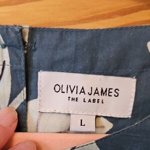 Unknown Brand Navy Blouse with Green Fruit Print and Puff Sleeves