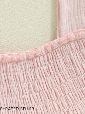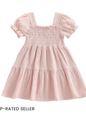 Boho Smocked Puff Sleeve Toddler Dress Cotton Blend A-Line Princess Casual