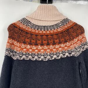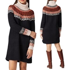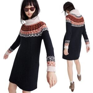 Madewell Turtleneck Sweater Dress Cotton Alpaca Fair Isle Pattern Mini Black XS