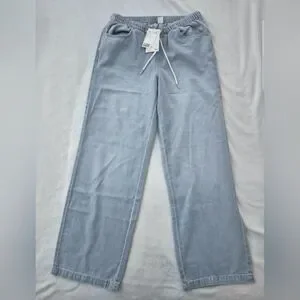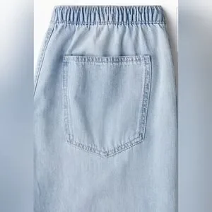 Loose-fit pants in soft denim made from a cotton and lyocell blend. Elasticized, drawstring waistband, front pockets, and back pockets. Wide legs.
